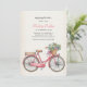Um rosa, vintage, a bicicleta da menina com um cheio da cesta da parte dianteira das flores. Um convite bonito da aguarela para a celebração do aniversário de uma rapariga.