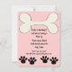 Um convite bonito do aniversário perfeito para as meninas que amam cães. Caracteriza um osso nos impressões da parte superior e da pata do cão na parte inferior. O fundo é uma luz - rosa. O texto é customizável.