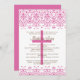 Comece seu evento fora do direito com nosso damasco elegante com damasco cor-de-rosa transversal no baptismo do bebé/convite brancos do batismo. Fácil personalizar, apenas adicione sua informação de evento e você é todo ajusta-se para ir.