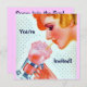 Este divertimento, imagem feminino é do cobrir de um compartimento de forma das mulheres dos anos 30 do vintage. Uma senhora retro bonita com um manicure colorido e um batido cor-de-rosa de vista delicioso! Modelo fácil de usar para personalizar o convite com sua própria informação.
