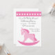O convite cor-de-rosa do chá de fraldas do cavalo de balanço é perfeito para um chá de fraldas da menina!