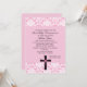 Comece sua celebração fora com este convite elegante contudo delicado para aquela comunhão santamente das meninas especiais. Tem um damasco cor-de-rosa na parte superior e na parte inferior do convite. Na parte inferior no centro há uma cruz preta com um coração cor-de-rosa no centro dele. Verifique para fora os muitos outros artigos nesta linha tal como etiquetas, porte postal, agradeça a lhe notas, e a mais.