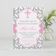 Convite cor-de-rosa e cinzento do baptismo do