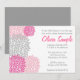 Convite cor-de-rosa e cinzento do chá de fraldas