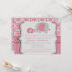 Comemore a menina nova que chega em sua vida com este convite temático do chá de fraldas do elefante pequeno adorável. Um elefante bonito das mamães e do bebê é o centro de atenção neste convite. Os papéis modelados bonito em máscaras bonitas do rosa e das cinzas serão o convite perfeito para seu chá de fraldas.