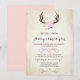 Este convite de casamento com flores cor-de-rosa e chifres de veado com fundo vintage vem completo com um convite e cartão de resposta. Personalize-o para um chá de noiva, chá de bebê, jantar de ensaio ou o que você quiser. Para ver o cartão de resposta correspondente visite www.zazzle.com/vginvites