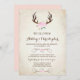 Este convite de flores cor-de-rosa rústicas com galhada de veado e fundo vintage vem completo com um convite e cartão de resposta. Personalize-o para um chá de noiva, chá de bebê, jantar de ensaio, ou o que você quiser. Para ver o cartão de resposta correspondente visite www.zazzle.com/vginvites