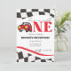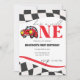 Apresentamos o nosso convite de aniversário de um ano personalizável de carro de corrida!