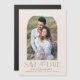 Anuncie sua data de casamento em estilo com nossa imã salve a data de fotos moderna. A imã salve a data simples apresenta o dentro de fotos do noivado de um quadro de arco colorido creme. "Salvar a Data" é exibido em fontes de script e serif modernos marrom-escuro. Personalize o ímã de fotos da data adicionando seus nomes, data do casamento e local do casamento.
