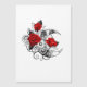 Contorno, lua da crista mecânica com engrenagens, decorada com rosas vermelhas com caules e folhas pretas em fundo branco. Steampunk