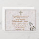 O convite cristão com cruz do ouro e mãos praying no fundo pastel mottled é apropriado para o primeiros comunhão santamente, confirmação ou batismo. Pode facilmente ser personalizado com os detalhes de seu evento. Os convites vêm completo com os envelopes.