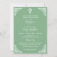 Um convite verde sábio com cruz floral branca e canto floresce para batismo ou batizar. Personalize os detalhes e mude batismo para batizar, se preferir. Parte da coleção Floral Cross.