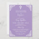 Um convite lilático com cruz floral branca e canto floresce para batismo ou batizar. Personalize os detalhes e mude batismo para batizar, se preferir. Parte da coleção Floral Cross.