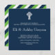 Azul-marinho e verde limão stripes Baptism, bautizo, bautismo, Primeiro Convite de Comunicação ou Confirmação. Perfeito por anunciar o dia especial do seu filho, da menina ou do gêmeo. Se você gosta deste design e deseja comprar cartões de coordenação, visite minha loja em www.zazzle.com/vginvites Este convite também está disponível como um download digital instantâneo.