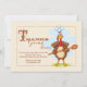 Um convite cómico que caracteriza um peru cómico com o chapéu de um cozinheiro chefe que guardara uma colher de madeira grande. (Fotorreceptor)