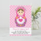 Convite de Matryoshka em bolinhas cor-de-rosa. Para mais design, visita www.callachic.com