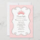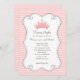 Como um conto de fadas, este convite bonito caracteriza os elementos reais adoráveis aptos para sua princesa pequena. Uma bandeira encaracolado branca bonita, decorada com uma coroa cor-de-rosa bonito e todos os detalhes do partido ajustados contra um fundo cor-de-rosa da listra de dois tons. Todos seus convidados serão certos saber que uma celebração doce da princesa está na loja neste partido. Criar um olhar belamente coordenado com etiquetas de harmonização (para favores ou chapéus de coco do cupcake), os cartões os botões da princesa, porte postal, sinais da jarda, da bandeira personalizados de DIY e obrigado de harmonização você cartões, também.
