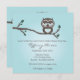 Uma coruja muito fofa empoleirada em um galho anunciando os detalhes da festa. Este convite pode servir para um chá de bebê ou qualquer outro compromisso como casamento ou aniversário. Também é muito moderno e na moda.