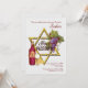 Um convite elegante de Seder com uma grande estrela de David coberta com um conjunto de uvas e de uma garrafa do vinho e do vidro provindo. A mensagem "Passover feliz" pre-é imprimida. (<a href='http://www.freepik.com/free-vector/different-scenes-about-wine_1011149.htm'>Projetado por Freepik</a>). <br/><br/>O cartão é fácil de personalizar com seus fraseio, opções da pia batismal, do cor da pia batismal, as de papel da forma e escolha de seis tipos de papel<br/><br/>Não exatamente que você está procurando? Todos nossos produtos podem ser projetados para encontrar suas necessidades em nenhuma sobretaxa<br/><br/>Contacte-nos simplesmente em askcottonlamb@gmail.com. <br/><br/>Produtos de coordenação disponíveis: Apenas pergunte-nos!