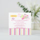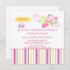A festa de aniversário desta menina 5.25x5.25 convida tem um vôo cor-de-rosa bonito do cão de filhote de cachorro da caniche em um avião. Há uma bandeira que está sendo puxada atrás com o nome e idade da criança. A parte inferior tem um rosa, um roxo, um cinza escuro, e uma beira listrada amarela. Você pode facilmente personalizar sua informação do partido no meio. Design de Sanqunetti do © dos direitos reservados