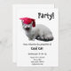 Um gato com um boné de formatura vermelho está pronto para party! Deixado todos saiba que você obteve finalmente esse grau com este convite de festas original. O clique personaliza para adicionar suas próprias palavras.