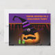 Personalize este convite de Halloween com o nome da sua criança e as informações da festa. Este convite apresenta um design único de Halloween de uma bruxa de abóbora. Um feitiço que deu errado e transformou a bruxa em uma Lanterna de Jack. Vire o cartão para ver os detalhes da festa.