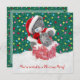 Urso de ursinho pequeno do papai noel em uma chaminé nevado com luzes de Natal coloridas no fundo. Você pode mudar a pia batismal, cor, tamanho e pôr seu próprio texto.