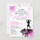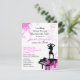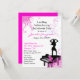 Convite da festa de solteira do divertimento, com os gráficos de flourishes florais cor-de-rosa e de sparkles coloridos, com a silhueta preta de uma menina de dança, em um piano. Personalize o texto para a noite da sua menina para fora. Escolheu que estoque do cartão você deseja demasiado.