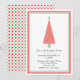 Convite da festa de Natal feito em um moderno ele, com uma árvore de Natal feita em um teste padrão de bolinhas vermelho e branco com acentos do verde da hortelã, em um fundo branco. Um vermelho e uma beira verde da hortelã funcionam em torno da borda do lado da saída do convite e o texto cinzento do costume está pronto para personalizar para ler o que você quer.