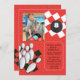 Faça a partido seguinte da boliche da sua criança uma greve! O fundo vermelho brilhante tem um teste padrão do tabuleiro de damas em preto e branco e caracteriza uma bola de boliche e os pinos. Apenas adicione sua foto favorita para fazer-lhe seu. O cartão é fácil de personalizar com seus fraseio, pia batismal, cor da pia batismal e escolha de seis tipos de papel.