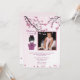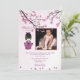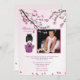 Um convite adorável que caracteriza uma boneca japonesa com os ramos de árvore de florescência que conectam sobre a janela da foto. Aperfeiçoe para o partido de toda a menina!