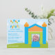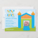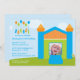 A festa de aniversário deste menino 5x7 convida tem um azul, um verde, e um bouncehouse das listras da laranja no direito com sua informação facilmente customizável do partido à esquerda. Há um lugar para que você adicione sua própria fotografia no interior da casa. Estúdio do cacau