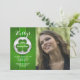 Convite da foto do Dia-tema de um St Patrick que é perfeito para celebrações adultas do aniversário ou para enviar cumprimentos do dia de St Patrick à família e aos amigos. O cartão verde de Kelly tem uma fita com um decalque redondo que caracteriza um trevo.
