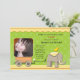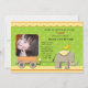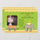 Um design unisex adorável que caracteriza um elefante que puxa um carro com a foto da sua criança nela. O verde, fundo das bolinhas tem toldo amarelo/alaranjado, scalloped.