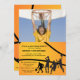 Um convite à moda para um quem ama o jogo. As características de design um fundo do basquetebol com os quatro jogadores da silhueta e uma grande janela da foto. O reverso é uma imagem desproporcionado do basquetebol. O cartão é fácil de personalizar com seus fraseio, pia batismal, cor da pia batismal e escolha de seis tipos de papel.