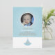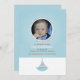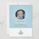 Um prazer em azul e em branco! Aperfeiçoe para o primeiro aniversário do seu rapaz pequeno. Sua imagem é moldada em uma janela redonda, decorativa da foto e o cartão embellished com um veleiro bonito.
