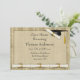 Convite da graduação com beira do diploma e acento do boné de formatura no fundo e no quadro textured tan do olhar. Os convites vêm com envelopes e sua escolha do papel.