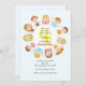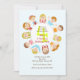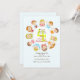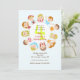 Um convite doce que caracteriza onze crianças felizes que sentam-se em uma mesa redonda. Bem-serido para a celebração de algum miúdo.