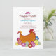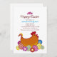 Um convite festivo à refeição matinal da páscoa e o ovo caçam. O cartão caracteriza uma galinha com ovos decorados e as flores lunáticas. O encabeçamento tem três corações pequenos e as palavras "felz pascoa".