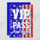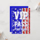 Convite com um design da bandeira dos Estados Unidos que caracteriza as estrelas dispersadas sobre do "um fundo estilizado do teste padrão do olhar sequin" nas máscaras de azul, vermelho e branco e do "passagem VIP você é convidado" escrito no branco. Um design customizável para que você personalize com seus próprios texto, imagens e ideias. Note por favor isto é uma imagem digital impressa da arte, não brilha nem não contem o brilho real ou os sequins.