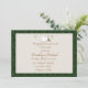 Convite cristão com pomba do branco e ramo de oliveira com cruzes. Beira ornamentado verde e fundo neutro. Este design é apropriado para o primeiros comunhão santamente, confirmação ou batismo. Pode facilmente ser personalizado com os detalhes de seu evento. Os convites vêm completo com os envelopes.