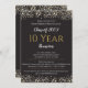 Convite da reunião de segundo grau. Estilo do quadro com brilho do ouro e confetes brancos.