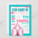 Convidados de boas vindas de um design do divertimento a pisar certo acima para o evento principal! Caracterizando um fundo brilhante de turquesa e uma tenda do circus listrada cor-de-rosa e branca cobertos com um elefante de equilíbrio, este convite contem toda a informação do evento em um fácil personalizar o formato. Uma grande maneira de construir o entusiasmo de seus convidados porque antecipam o carnaval ou a celebração temático do aniversário do circo que é planeada para sua filha!