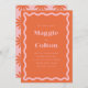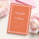 Estes convites para o casamento têm uma cor laranja arrojada, aliada a uma rosa claro, criando uma estética vibrante e lúdica. A borda da onda retrorativa adiciona um toque de nostalgia e adiciona um elemento único e divertido ao design. Os convites vêm em várias opções de cores, dando a você a flexibilidade de criar uma aparência coesa para o seu dia especial. A papelaria coordenadora foi projetada para misturar e combinar, permitindo que você crie uma busca personalizada e coordenada pelo seu casamento.