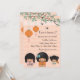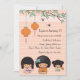 Um convite adorável para a celebração de uma menina que caracteriza três bonecas japonesas vestiu-se nos quimonos sob um ramo de árvore de bambu. As lanternas de suspensão e dois pássaros voam acima.