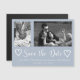 O rico moderno pastel de pincel azul empoeirado salva o casamento de data com duas fotos coladas - uma vertical / orientada para retrato e a outra horizontal / paisagem e dois corações de poça. ++++++++++++++ Personalize-o com suas fotos, nomes e data de casamento!