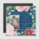 Casamento elegante de fotos de casal elegante salve a data marinho cartão magnético azul em um estilo romântico vintage com belos rosas pintados à mão, pincelados e arrojados, com folhagem vívida verde de eucalipto, sua foto e texto personalizado dentro a um retângulo escuro e escuro, com forma de dois quadros. +++++++++ Adequado para anunciar um primavera de colheita rústico, casamento de rosa de outono ou de verão.
