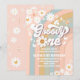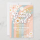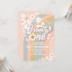 Celebre o marco do seu pequeno com este convite de primeiro aniversário retrô e descolado! Com listras de arco-íris pastel, margaridas divertidas, sinais de paz, corações e estrelas, este design captura a vibe divertida dos anos 70. Perfeito para uma festa com tema boho ou retrô, este convite personalizável facilita o compartilhamento de todos os detalhes importantes com familiares e amigos. Uma maneira estilosa e alegre de definir o tom para um dia cheio de paz, amor e diversão!