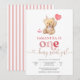 Celebre o marco especial do seu pequeno com este adorável convite de primeiro aniversário com ursinho. Com um design pastel com um ursinho fofo segurando um balão em forma de coração, fontes divertidas e detalhes cor-de-rosa encantadores, este cartão define o tom perfeito para uma festa doce e memorável. Personalize com o nome da criança, detalhes da festa e informações de RSVP para criar um item que os convidados vão amar. Ideal para aniversários de meninas, este convite combina capricho e calor para tornar sua celebração inesquecível.