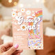 Celebre o marco do seu pequeno com este convite de 1º aniversário inspirado no estilo retrô! Com um fundo cor de pêssego com margaridas alegres, borboletas, arco-íris e uma van flower-power, este design captura a diversão e o espírito livre dos anos 60. Perfeito para um tema de festa groovy, este cartão personalizável facilita o compartilhamento de detalhes do evento com familiares e amigos. Adicione o nome da criança e as informações da festa para criar um souvenir único que espalha paz, amor e alegria.